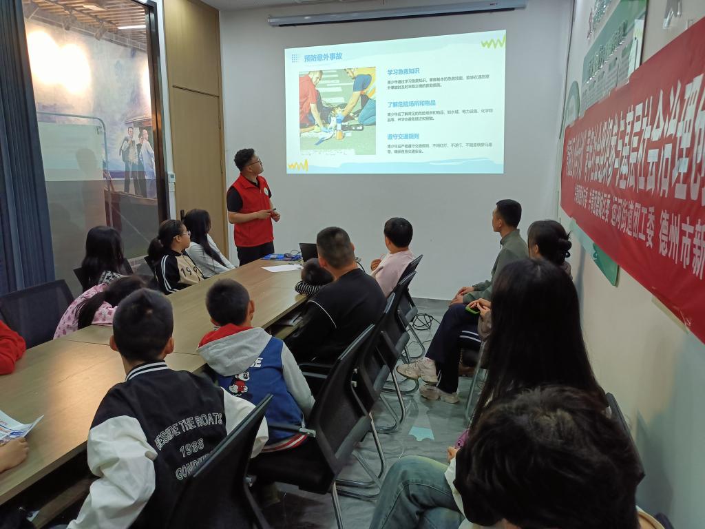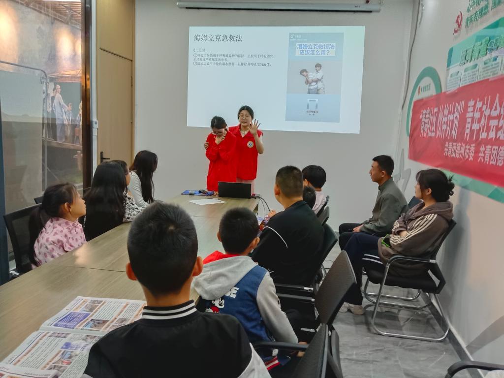 活动伊始,志愿者通过ppt与视频的形式,向青少年详细讲解了网络安全、日常生活、心理健康等安全教育实践与推广,并讲解如何预防及避免安全问题的发生,引导青少年提高安全意识。随后,志愿者对海姆立克急救法和血压计使用方法进行现场操作示范,讲解在遇到突发状况时如何第一时间采取正确、有效的应急措施,用浅显易懂的方式科普每一个细节。青少年学习热情高涨、积极参与练习,纷纷表示培训活动切实提高了自己健康急救意识和水平。